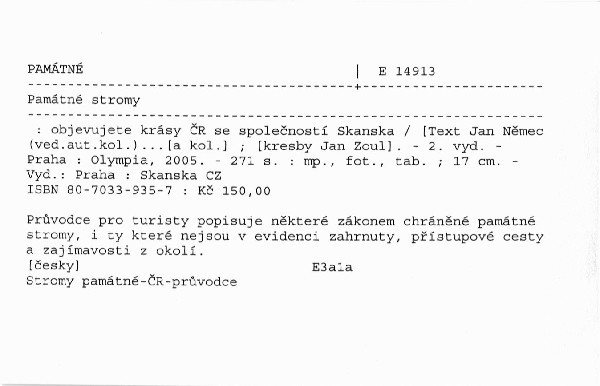 Průvodce pro turisty popisuje některé zákonem chráněné památné stromy, i ty které nejsou v evidenci zahrnuty, přístupové cesty a zajímavosti z okolí.