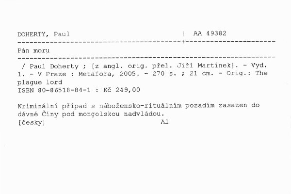| Autor | Paul Doherty ; [z angl. orig.] přel. Jiří Martínek |