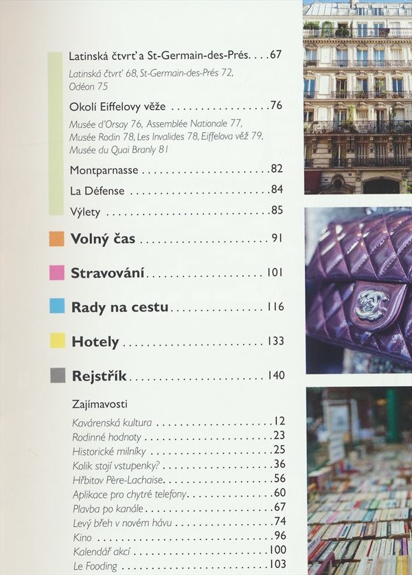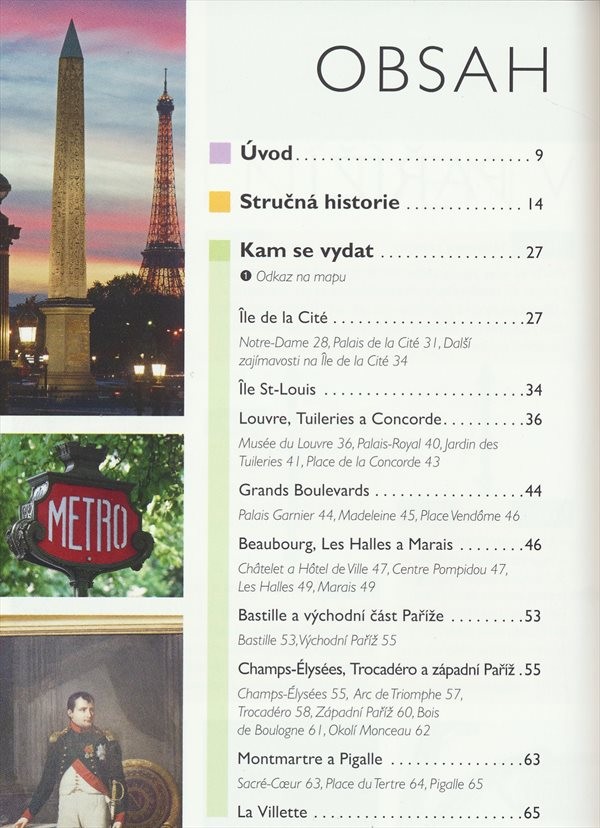 Cestovní průvodce seznamuje s nejzajímavějšími pařížskými památkami, radí, kam se vydat na výlet, kde trávit volný čas, také o možnostech ubytování, či stravování.