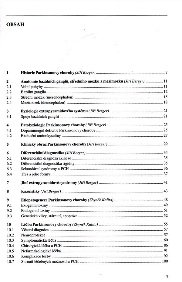 Klinický obraz Parkinsonovy choroby, kazuistiky, etiopatogeneze, léčba. Monografie.