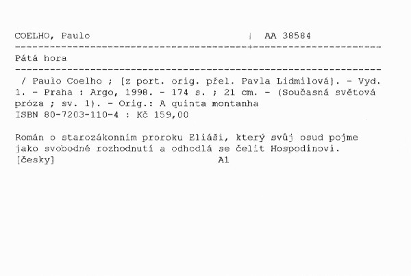 | Autor | Paulo Coelho ; [z port. orig. přel. Pavla Lidmilová] |