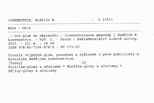 | Podnázev | 500 glos ze zápisníku : Loewensteinova abeceda |