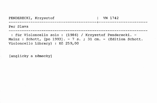 Vydání: Schott 1993 | Jazyk: angličtina a němčina | Signatura: VN 1742