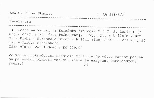 | Autor | C. S. Lewis ; [z angl. orig. přel. Jana Pošmourná] |