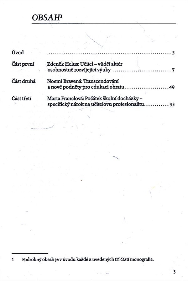 Kolektivní monografie je příspěvkem k řešení problémů, hromadících se kolem pojetí a zabezpečení učitelství: jednak růst významu učitelství pro budoucnost společnosti, jednak nedostatečná podpora a rostoucí nové nároky.
