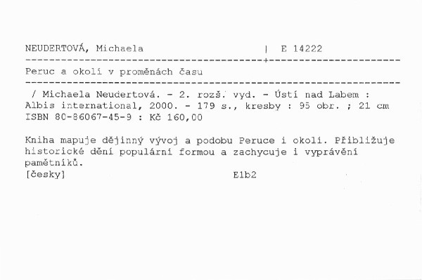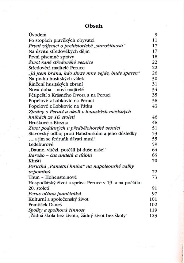 Kniha mapuje dějinný vývoj a podobu Peruce i okolí. Přibližuje historické dění populární formou a zachycuje i vyprávění pamětníků.