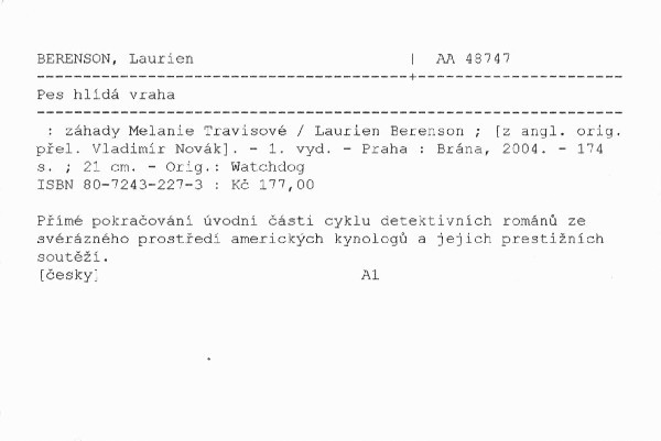 | Autor | Laurien Berenson ; [z angl. orig. přel. Vladimír Novák] |