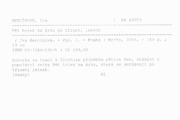 Autorka se vrací k životním příběhům pětice žen, známých z populární knihy Pět holek na krku, které se setkávají po třiceti letech.
