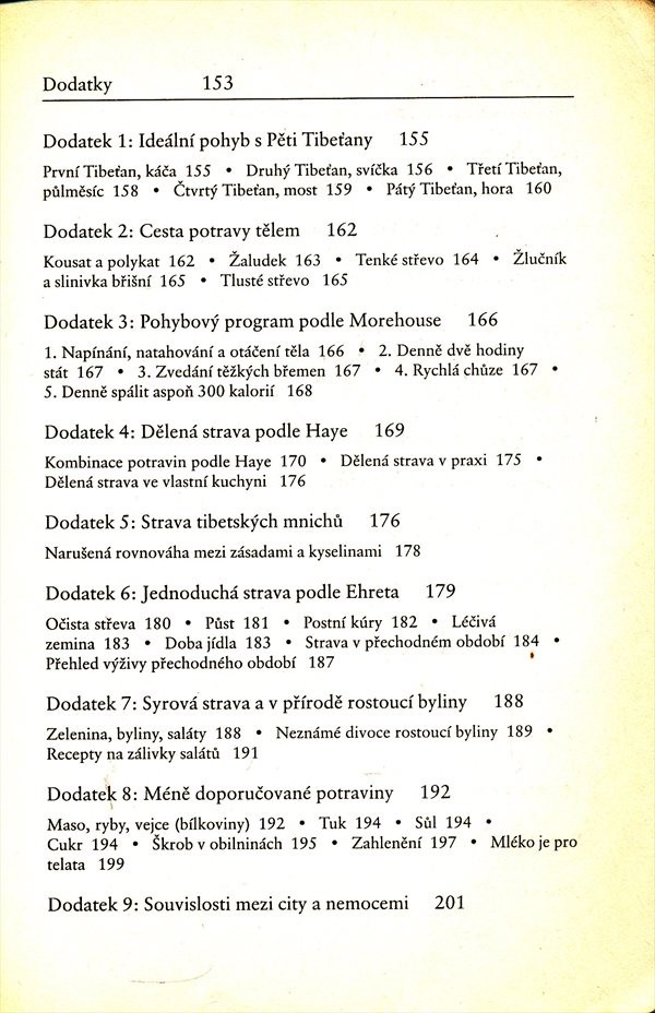 Vlastní cvičení "Pět Tibeťanů" je v knize zachyceno jen okrajově, spíše se příručka zabývá radami jakou stravu jíst, jaké jsou omyly v zavedené soustavě stravování, jaký pohyb je pro člověka vhodný, jak působí psychika na zdraví a vitalitu. Autor předpokládá, že základem vitality jsou individuálně přizpůsobené techniky těla, uvědomělé stravování a cílevědomé mentální cvičení.