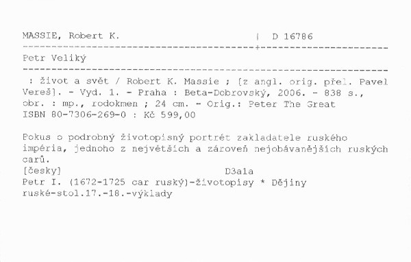 | Autor | Robert K. Massie ; [z angl. orig. přel. Pavel Vereš] |
