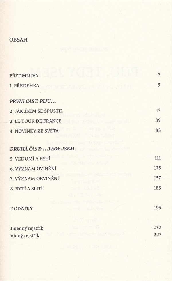| Autor | Roger Scruton ; z anglického originálu ... I drink therefore I am ... přeložila Pavla Doležalová |