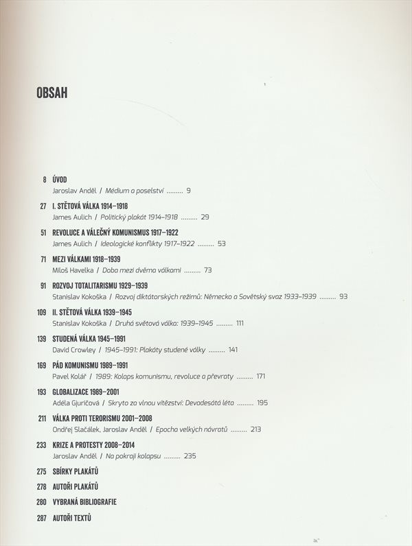 Plakát jako nositel politických a ideologických poselství a zároveň odraz historických událostí. Katalog stejnojmenné výstavy v pražském DOXu. Zaměřuje se na jednotlivé historické etapy 20. a poč. 21. století a jejich odraz v plakátové tvorbě.