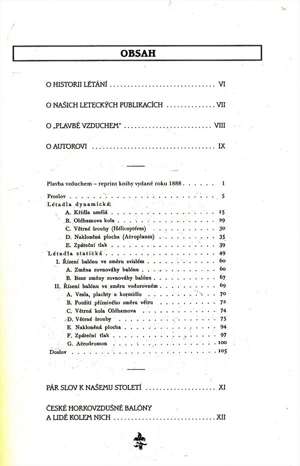 V roce 1888 vyšla v Čechách první česky psaná publikace, která se věnovala létání. Autorem byl doktor filozofie František Oldřich Vaněk, který se problematikou létání zabýval dlouhodobě. Reprint této knihy nabízí ucelený pohled na počátky létání, je rozdělen do dvou stěžejních kapitol, jež se věnují strojům "těžším" a "lehčím" než vzduch. Obě kapitoly obsahují historické a technické údaje, závěr knihy je věnován vlastnímu projektu Františka Oldřicha Vaňky, vzducholodi zvané Aerodromon. Reprint je doplněn obrázky a komentářem leteckého historika Pavla Svitáka o počátcích balonového létaní a letecké literatuře v českých zemích.