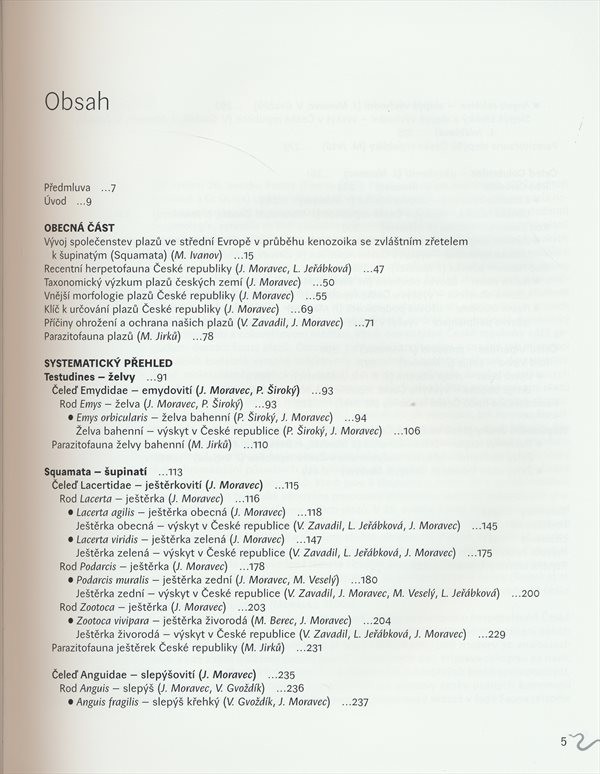 Kniha shrnuje dosavadní poznatky o taxonomii, morfologii a biologii všech druhů našich plazů.