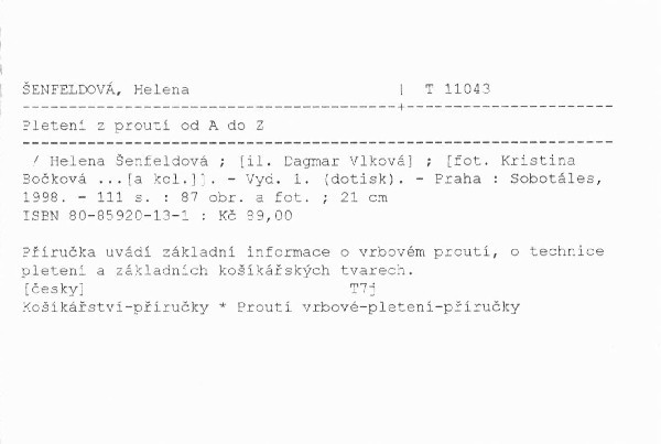 Příručka uvádí základní informace o vrbovém proutí, o technice pletení a základních košíkářských tvarech.