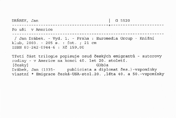 Třetí část trilogie popisuje osud českých emigrantů - autorovy rodiny - v Americe na konci 40. let 20. století.