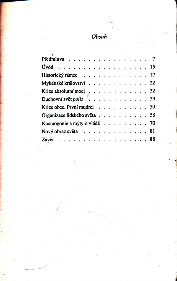 Filozofický esej věnovaný vývoji starořecké duchovní kultury mezi 12. až 5. stoletím před naším letopočtem.