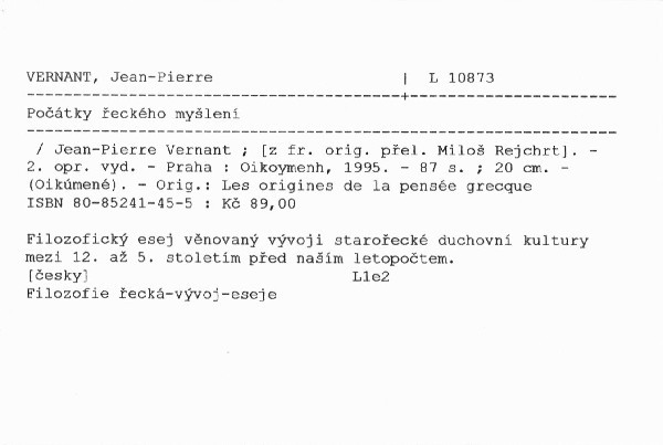 | Autor | Jean-Pierre Vernant ; [z fr. orig. přel. Miloš Rejchrt] |