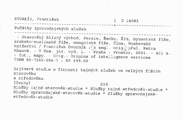 Zajímavá studie o činnosti tajných služeb ve velkých říších starověku a středověku.