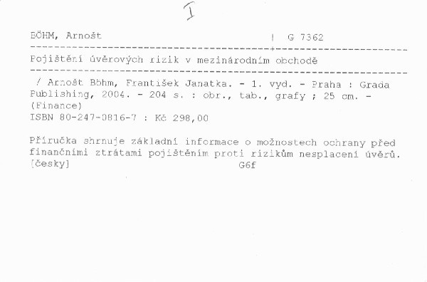 NázevPojištění úvěrových rizik v mezinárodním obchodě