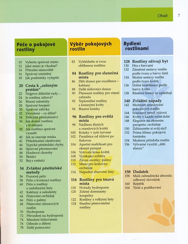 Obrazová publikace se věnuje péči o pokojové rostliny, představuje jednotlivé květiny a jejich pěstitelské nároky.