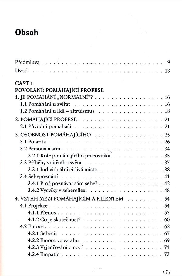 Kniha se věnuje tématu pomáhajících profesí z obecného i praktického pohledu. Autorka věnuje zvláštní pozornost dvěma východiskům - totiž tvorbě a dialogu.