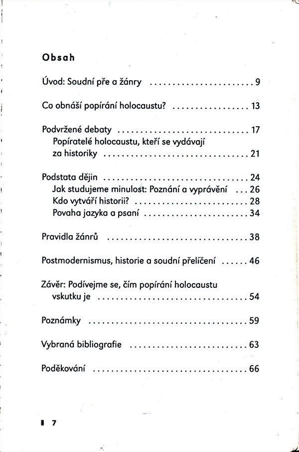 Studie věnovaná otázkám objektivity a nestrannosti historického bádaní v postmoderní době; zároveň se zabývá problémem popírání holokaustu.