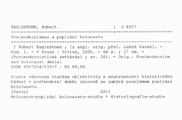 | Název | Postmodernismus a popírání holocastu |