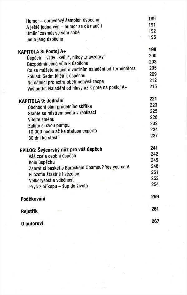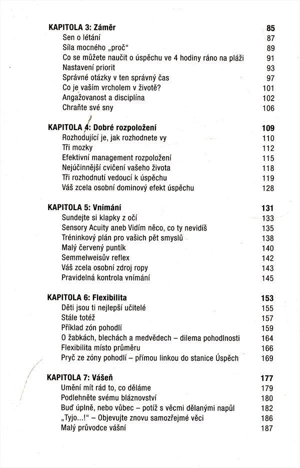 Ať už věříte, že uspějete, nebo neuspějete, v každém případě budete mít pravdu. Vše záleží na vašem vnitřním naladění, na správném postoji. Mějte sebedůvěru a buďte trpěliví, převezměte odpovědnost za svůj život, držte se cesty, již jste si vytyčili, a každý den na ní udělejte aspoň jeden krok kupředu. Vydejte se ve stopách lidí, kteří něco dokázali, jako Tiger Woods nebo Bruce Springsteen, a nechte si od nich poradit. Ilja Grzeskowitz vás seznámí se svou osvědčenou a prověřenou metodou, jak pomocí několika jednoduchých a lehce aplikovatelných pravidel dosáhnout úspěchu a spokojenosti. Kniha je zaměřená prakticky. Bude vás inspirovat a motivovat. Nakladatelská anotace.