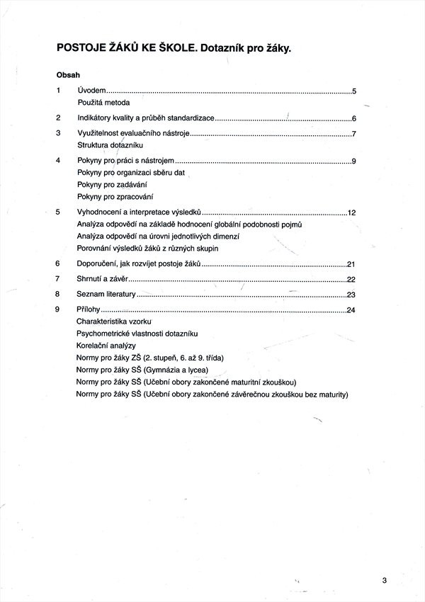 Publikace předkládá dotazníky, s jejichž pomocí lze zmapovat postoje žáků ke vzdělání, ke škole a kvybraným vyučovacím předmětům.