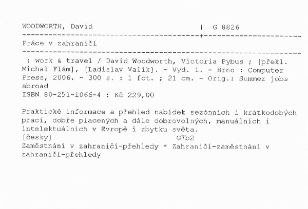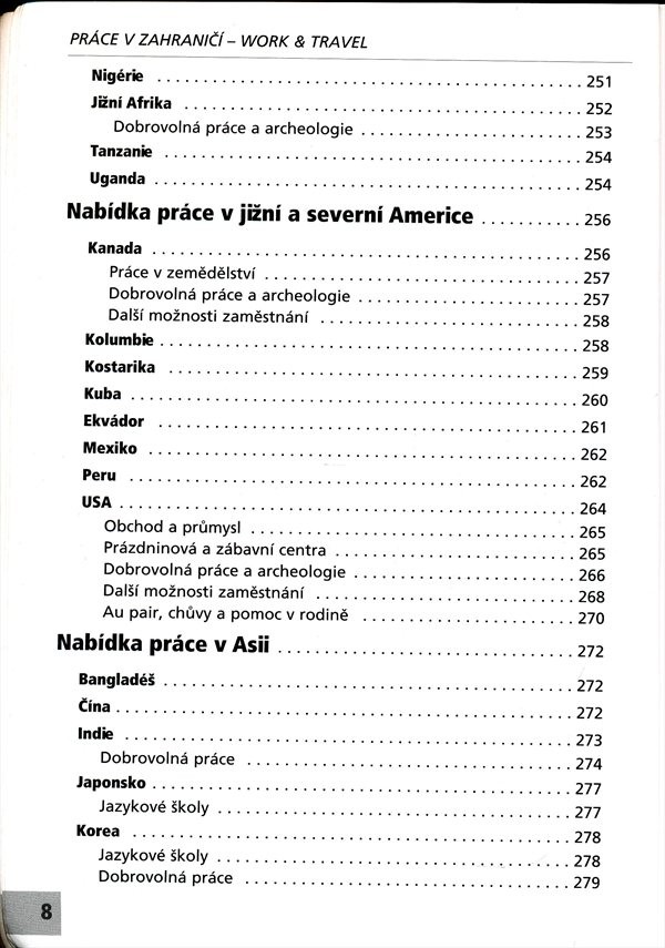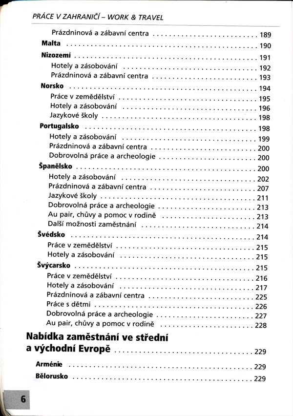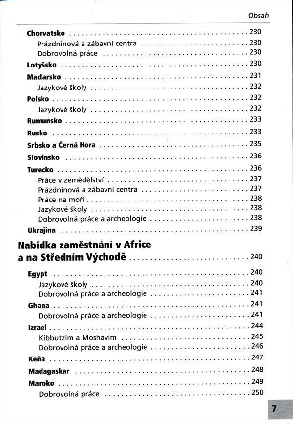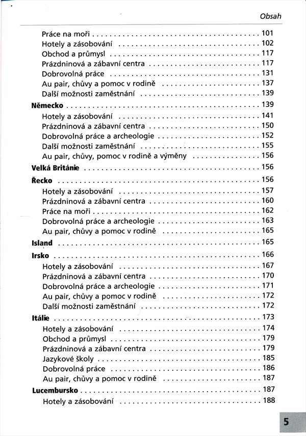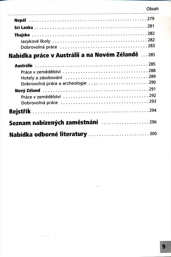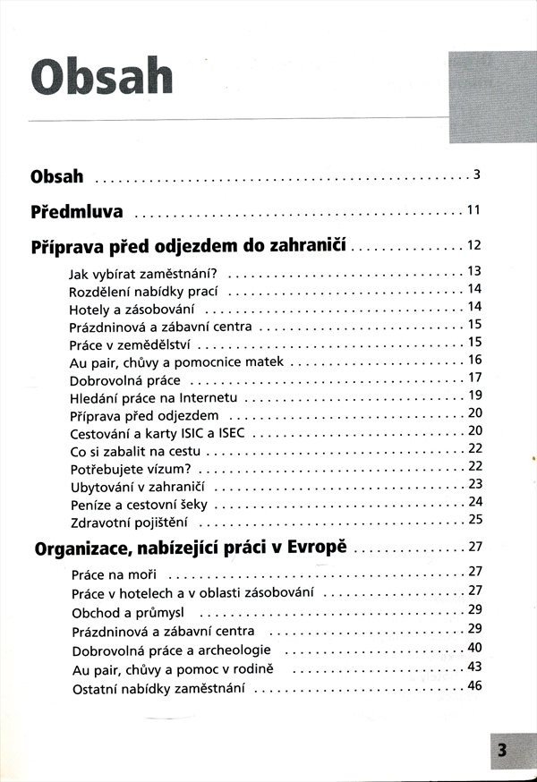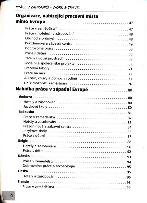 Zájemce by měl druh povolání volit podle cíle, jehož chce dosáhnout: zdokonalení jazyka, vylepšení budoucího životopisu nebo finančního efektu. Publikace zahrnuje všechny možnosti od pokojských, řidičů, údržbářů, přes kosmetičky, instruktory windsurfingu nebo lyžování až k manažerovi koncertních turné, lodnímu kapitánovi, případně vedoucímu expedice. Charitativní projekty se zaměřují na archeologii, ekologii i zdravotnictví, podstatná část je věnována brigádám pro au pair, chůvy a pomocnice v domácnosti. Kromě kontaktu na firmu či organizaci je uveden přibližný plat, požadavky na uchazeče a minimální doba zaměstnání. Nechybí informace o potřebném vízu, zdravotním pojištění, pracovním povolení či povolení k pobytu. Většina nabídek se týká Evropy, ale alespoň částečně jsou zmíněny všechny kontinenty.