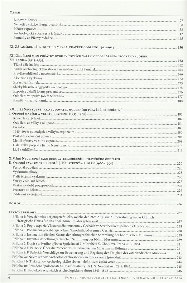 Odborná publikace mapující činnost pravěké a raně středověké archeologie Národního muzea od jeho založení roku 1818 do rozdělení republiky v roce 1990.