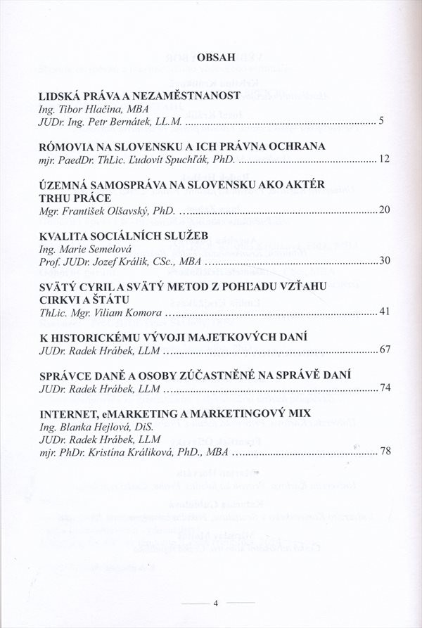 Sborník příspěvků věnovaných právním a ekonomickým souvislostem sociálních vztahů.