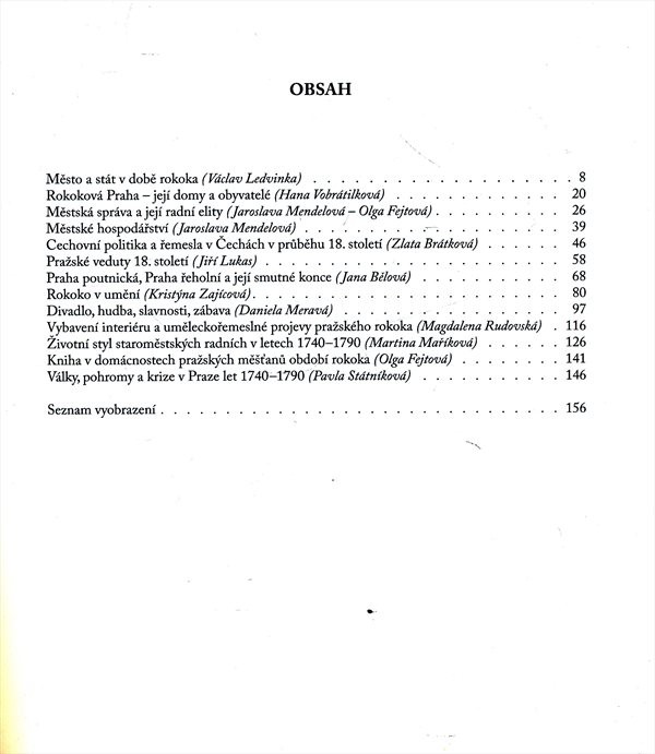 Název dílčí částiPraha poutnická, Praha řeholní a její smutné konce /; Pražské veduty 18. století /; Městské hospodářství /; Divadlo, hudba, slavnosti, zábava /; Vybavení interiéru a uměleckořemeslné projevy pražského rokoka /; Války, pohromy a krize v Praze let 1740-1790 /; Rokoková Praha - její domy a obyvatelé /; Rokoko v umění /