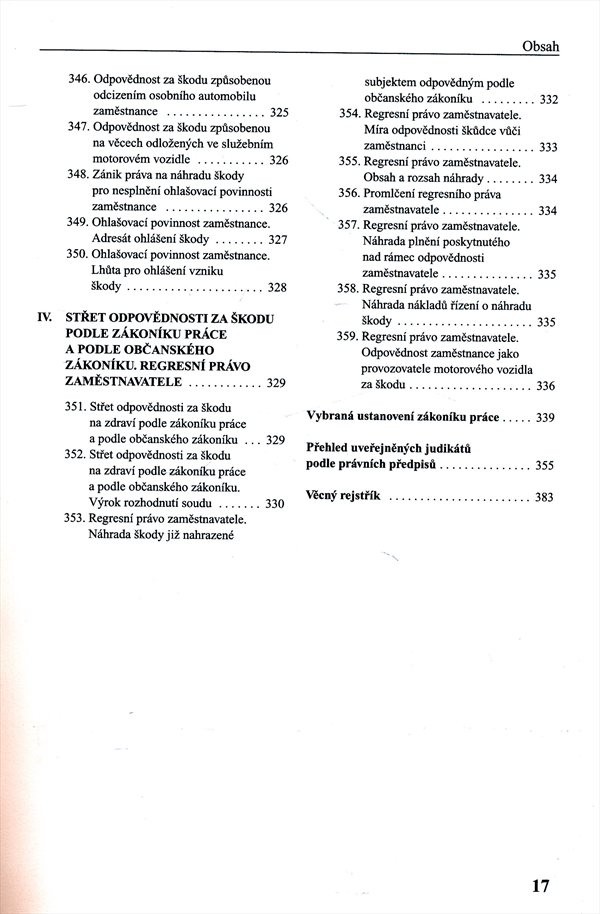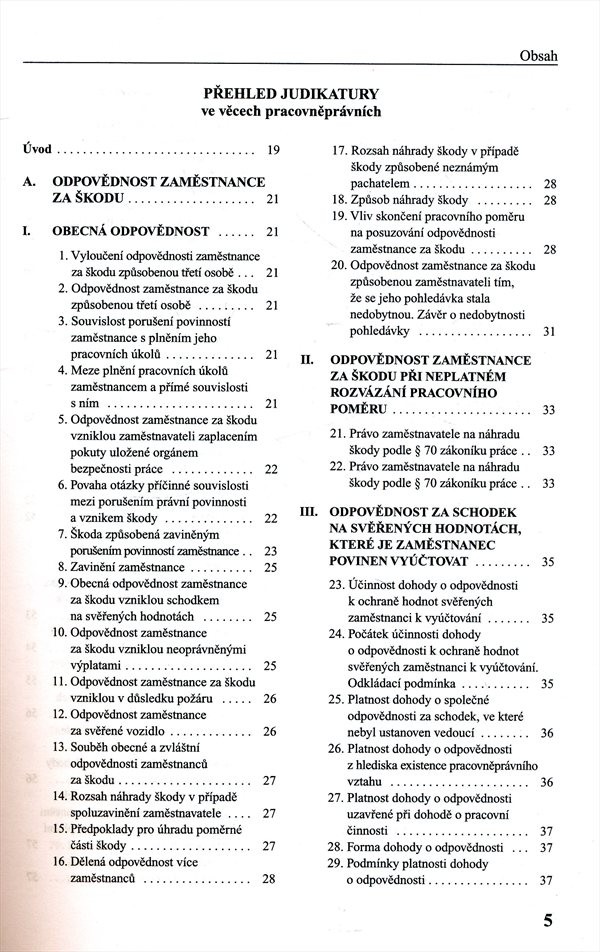 Přehled judikatury týkající se náhrady škod ve věcech pracovněprávních vycházející z právního stavu k 30. 4. 2011.