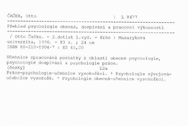| Název | Přehled psychologie obecné, dospívání a pracovní výkonnosti |