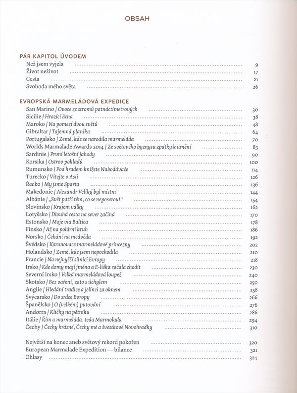 Kniha představuje ohlédnutí nejen za roční marmeládovou expedicí, kdy autorka s obytným vozem projela celou Evropu a kus Afriky a vařila marmelády na nejrůznějších místech starého kontinentu, ale nabízí také příběh o hledání sebe sama.