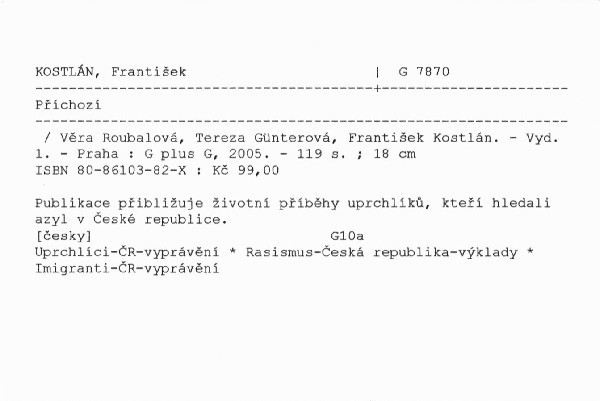 V první části autoři popisují individuální osudy a prožitky lidí, žíjících v uprchlických táborech. Druhá část přináší osm příběhů o netoleranci: své zkušenosti sdělují lidé, kteří doslova na vlastní kůži poznali, co je rasismus a xenofobie. Na základě těchto vyprávění se autoři snaží upozornit českou veřejnost na časté utrpení "příchozích" i na nelehkou snahu pracovníků občanských sdružení o vyřešení životní situace uprchlíků.