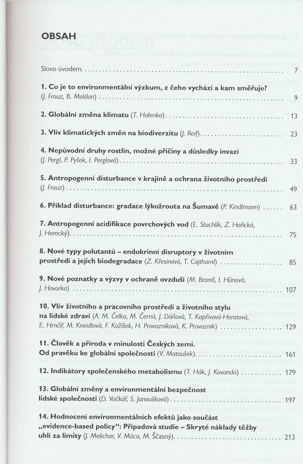 Publikace ukazuje, že environmentální problémy mají nejen stránku čistě přírodovědnou, ale obsahují zpravidla i pohled technický, ekonomický a společenskovědní, přinášející otázky sociálně-právní, edukativní, etické apod.
