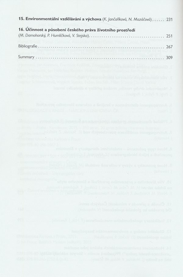 Propojování těchto pohledů představuje největší výzvu a zároveň největší příležitost environmentálního výzkumu. Jednotlivé kapitoly přinášejí shrnutí hlavních směrů environmentálního výzkumu, který se provádí na Univerzitě Karlově, a zároveň naznačují zaměření environmentálního výzkumu v celé České republice. Nakladatelská anotace.