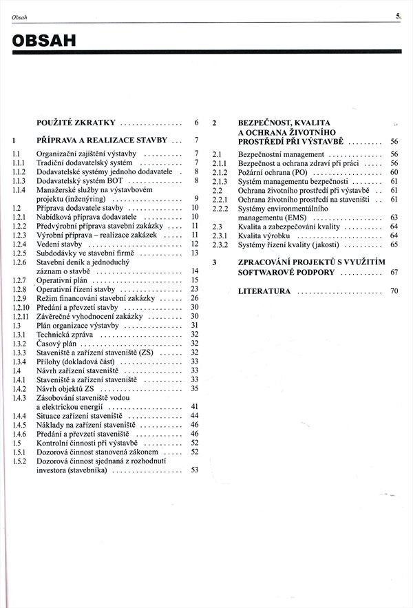 Technicko-ekonomické procesy spojené s přípravou staveb; zásady přípravy a realizace stavby; otázky bezpečnosti a ochrany zdraví a požární ochrany.