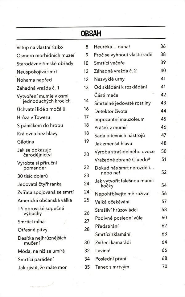 Tato kniha vás zavede na krátkou divokou výpravu do hrůzostrašných, krutých a strašlivých momentů dějin. Je plná poutavých událostí z minulosti s veškerými krvavými okamžiky. Počínaje různými způsoby zabíjení a zpackanými popravami a konče vražednými vládci a zhoubnými nákazami – nenechá náhrobní kámen na kameni. Nakladatelská anotace. Kráceno.