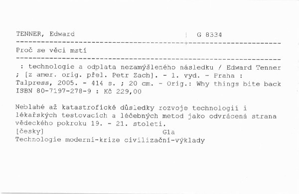 | Autor | Edward Tenner ; [z amer. orig. přel. Petr Zach] |