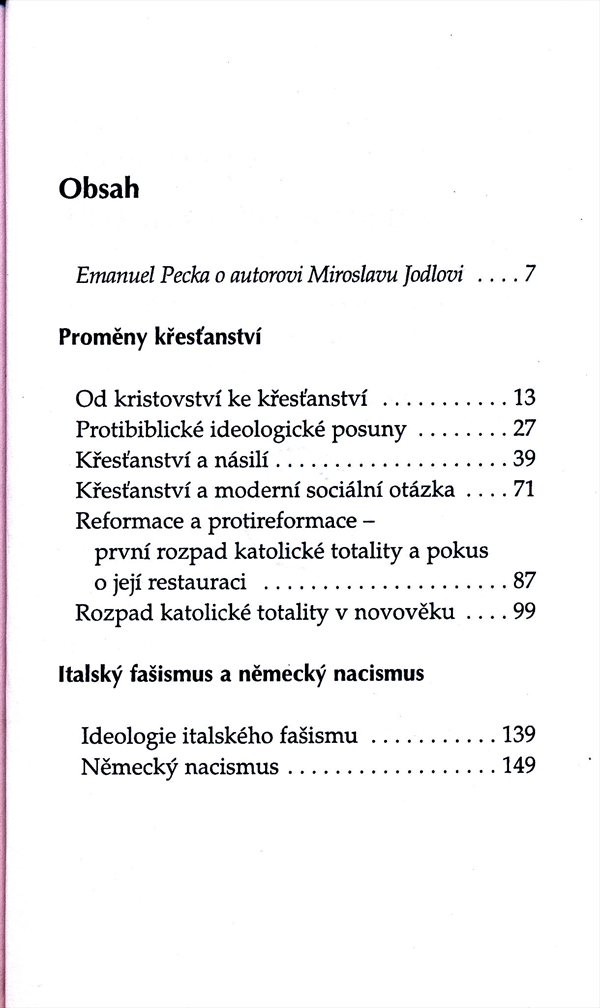 Nejde tedy o vědeckou ateistickou studii, případně exkurz do teologie, filozofie, religionistiky nebo historie, ale práci člověka, který na vlastní kůži zažil hrůzy 20. století (nacismus, komunismus), a který je hluboce zklamán zlem a krutostí v dějinách lidské společnosti. Kniha vypočítává všechny prohřešky církve od raného středověku po současnost. Ponechává stranou její historický a kulturní přínos a zaměřuje se na rubovou stránku jejího dějinného působení. K tomuto eseji je připojena kapitola z knihy Teorie elity a problém elity, pojednávající o podstatě německého nacismu a italského fašismu. Knihu doplňuje medailon autora z pera prof. Emanuela Pecky.
