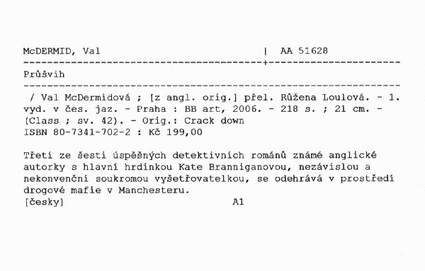 | Autor | Val McDermidová ; [z angl. orig.] přel. Růžena Loulová |