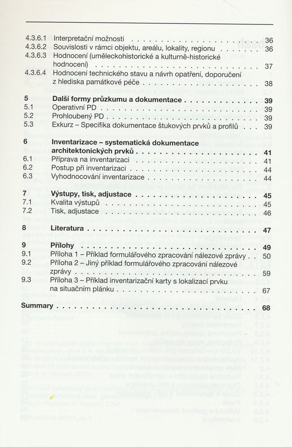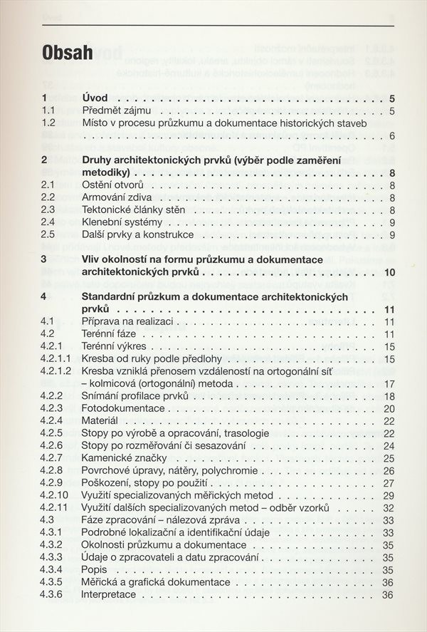 Metodika se zabývá standardy při průzkumu, dokumentaci a inventarizaci architektonických prvků (např. ostění, armování, tektonické články, klenební systémy).