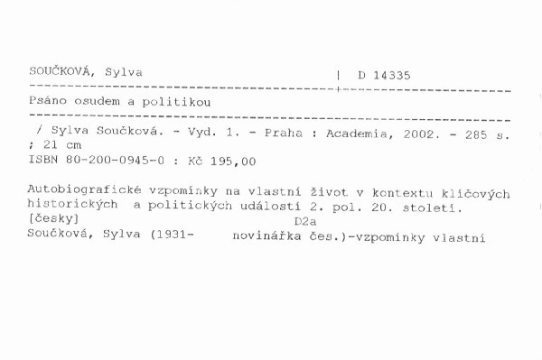 | Záhlaví | SOUČKOVÁ, Sylva |