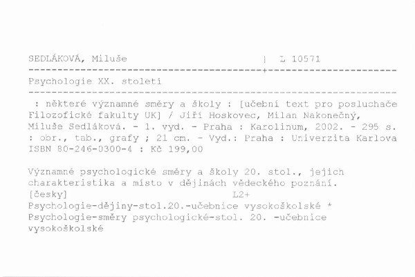 | Autor | Jiří Hoskovec, Milan Nakonečný, Miluše Sedláková |