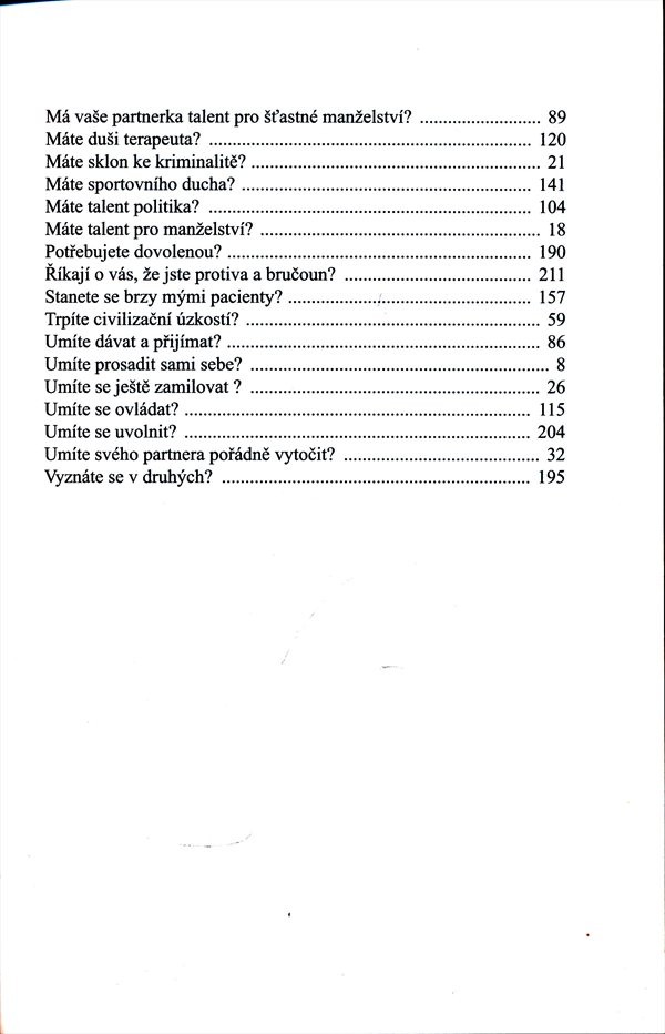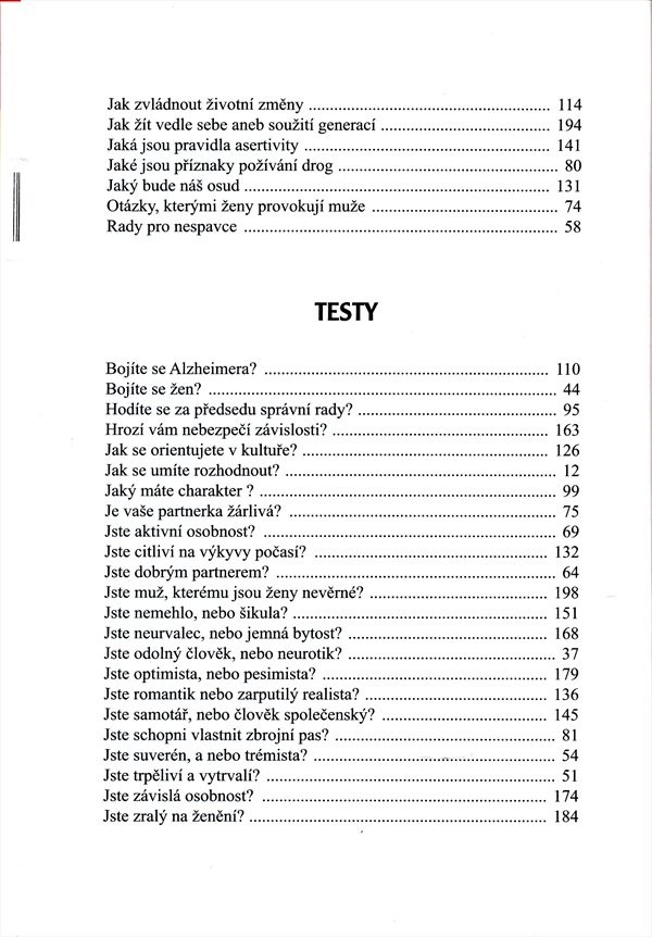 Zábavné psychotesty se snaží pobavit i dovést nás k zamyšlení nad tím, jací jsme a jak se chováme. Testy doplňují psychologická desatera - co má člověk dělat, aby se mu lépe žilo.