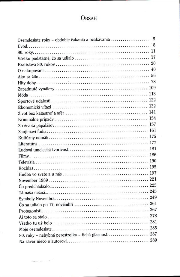 Vzpomínková kniha přibližuje atmosféru, každodenní život, kulturu, společnost a osobnosti osmdesátých let 20. století v Bratislavě a na Slovensku.